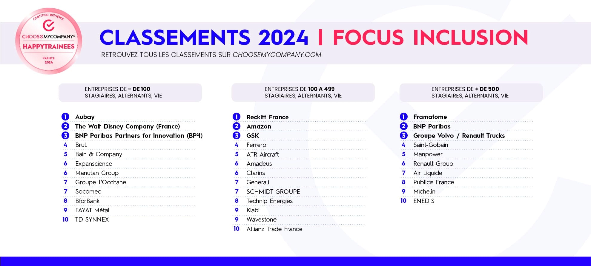 Le classement Focus Inclusion 2024 distingue les structures qui font preuve d’une véritable politique d’inclusion. Pour évaluer ces organisations, ChooseMyCompany s’appuie sur :